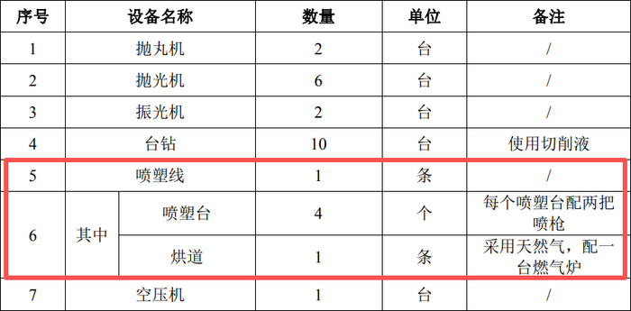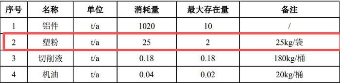 项目设置1条喷塑线,共2个喷塑台,每个喷塑台配2把喷枪,共有4把喷枪,每次运行只有2把喷枪同时运行。根据业主提供资料,单把喷枪的速率约为0.1kg/min,在8h作业时间内,一把喷枪塑粉最大喷涂量约为0.048t/d,年喷涂时间为300天,则最大塑粉喷涂总量为28.8t/a,故本项目配置的设备能够满足项目达产后产品的生产能力要求。