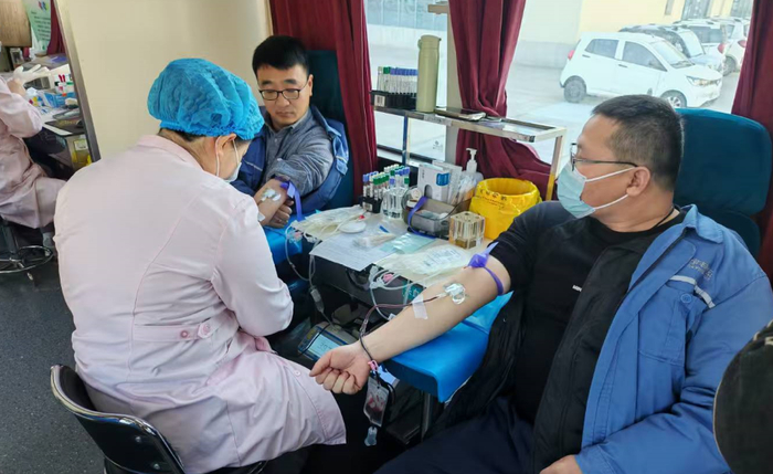 上午,献血现场秩序井然。员工们分批前来,在指引下完成登记、验血等流程。他们当中,有人是坚持多年的“献血模范”,有人是初次尝试的“热血新人”,也有带头参与的管理人员。一股股殷红的热血,承载着宝丰人的真情,汇聚成守护生命的力量。